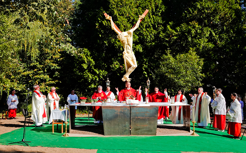 Am Fest Kreuzerhöhung feierte Bischof Stephan Ackermann an dem neu errichteten Altar vor dem Griesenbrock-Kreuz die Heilige Messe. Zugleich segnete er den Altar, der seit dem Katholikentag 2006, in Einzelteile zerlegt, in Räumen der Erwerbslosenselbsthilfe gelagert war. Durch die Corona […]