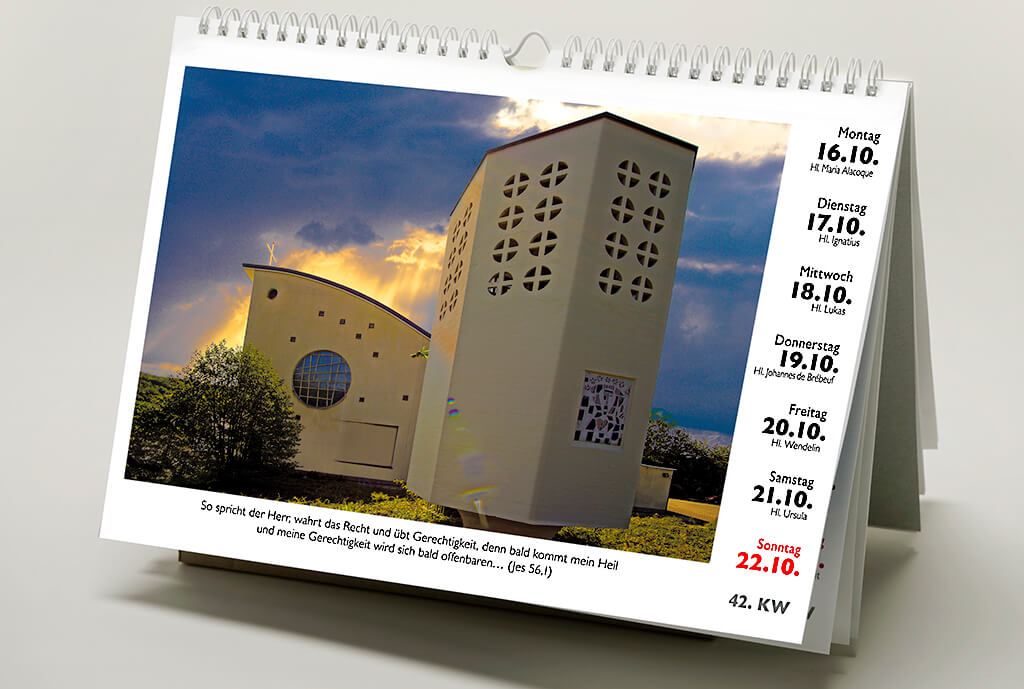 Der außergewöhnliche Kalender bietet Woche für Woche einen Blick auf die Klosteranlage Heilig Kreuz in Püttlingen und auf die stimmungsvollen Landschaften des Köllertals. Der Fotokünstler und Dipl. Designer Olaf Reeck, der sich seit Jahren intensiv mit dem Kloster Heilig Kreuz […]