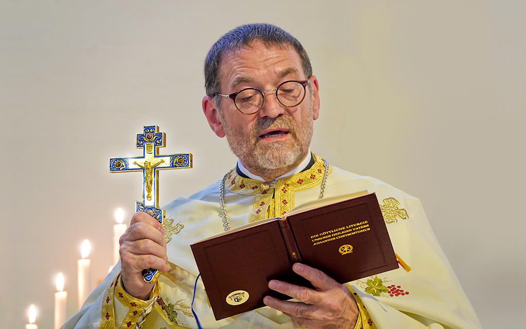 Am Sonntag, den 30.07.2023, wurde um 18.00 h die Heilige Messe in der byzantinischen Liturgie der griechisch-katholischen Kirche der Ukraine – teilweise in ukrainischer Sprache – gefeiert. Die griechisch-katholische Kirche ist mit der römisch-katholischen Kirche uniert.