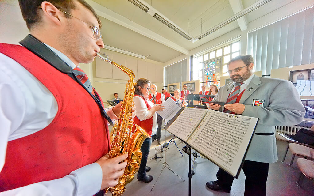 Mit dem Steigerlied, in das die Besucher der Vernissage einstimmten, setzte die Stadtkapelle den musikalischen Schlusspunkt der Eröffnungsfeier.