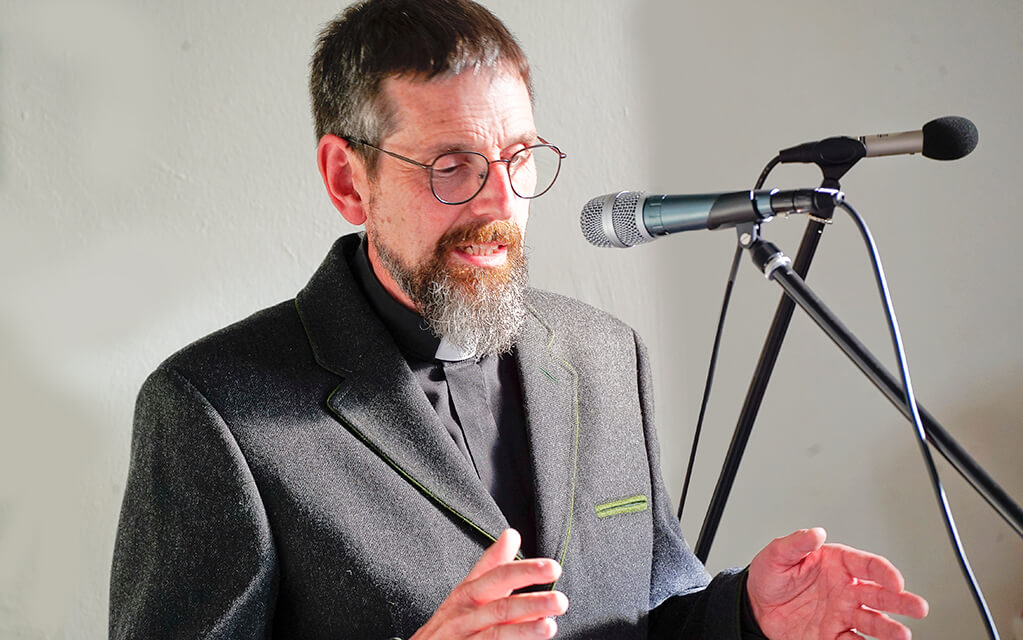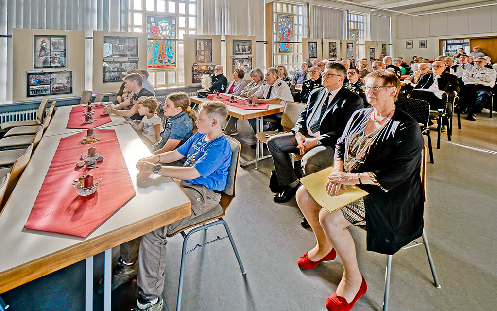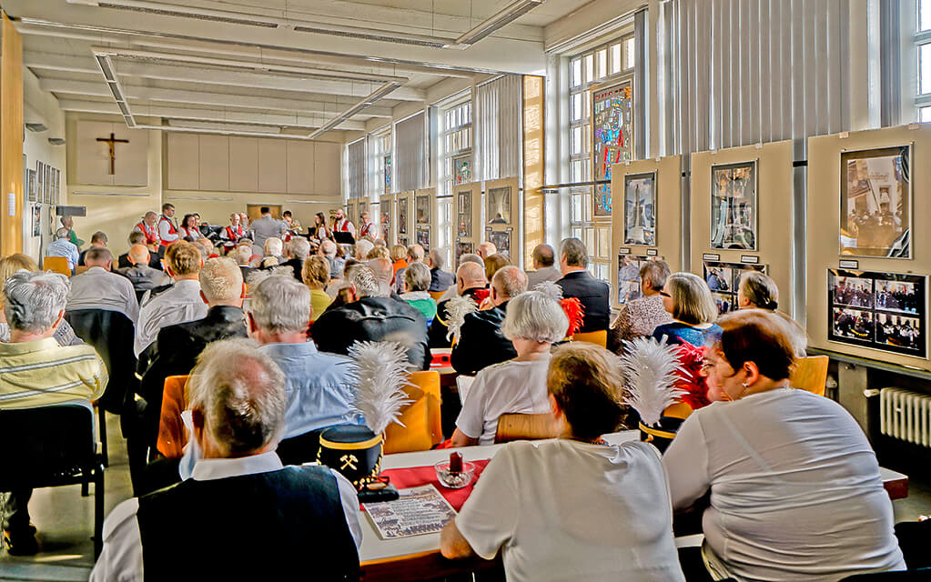 Rektor Hans-Georg Müller konnte für das Geistliche Zentrum im Kloster Heilig Kreuz zahlreiche Gruppen aus saarländischen Bergmannsvereinen sowie viele Mitgliedern des Freundeskreises des Klosters Heilig Kreuz begrüßen. Sein besonderer Gruß galt Bürgermeisterin Denise Klein und den Mitgliedern der Stadtkapelle, die die Veranstaltung musikalisch umrahmte. Er würdigte Frau Marion Sänger, die neue und alte Fotos, Zeichnungen, Gemälde und Besonderheiten in ihrer Ausstellung zusammengetragen hat. Die Ausstellung ist eine Hommage an die Generationen von Bergleuten, die das Saarland geprägt haben.