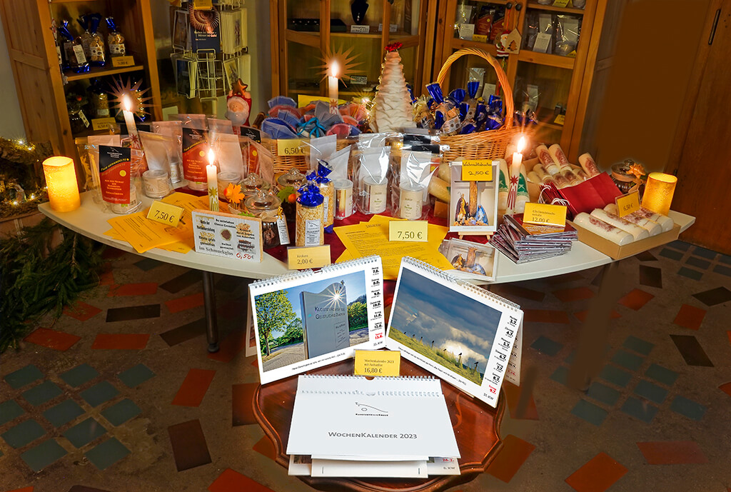 Zusätzlich zu den regulären Öffnungszeiten von Montag bis Freitag 9:00 – 12:00 Uhr ist der Klosterladen an den 4 Advent-Sonntagen von 14:30 – 20:00 Uhr geöffnet.